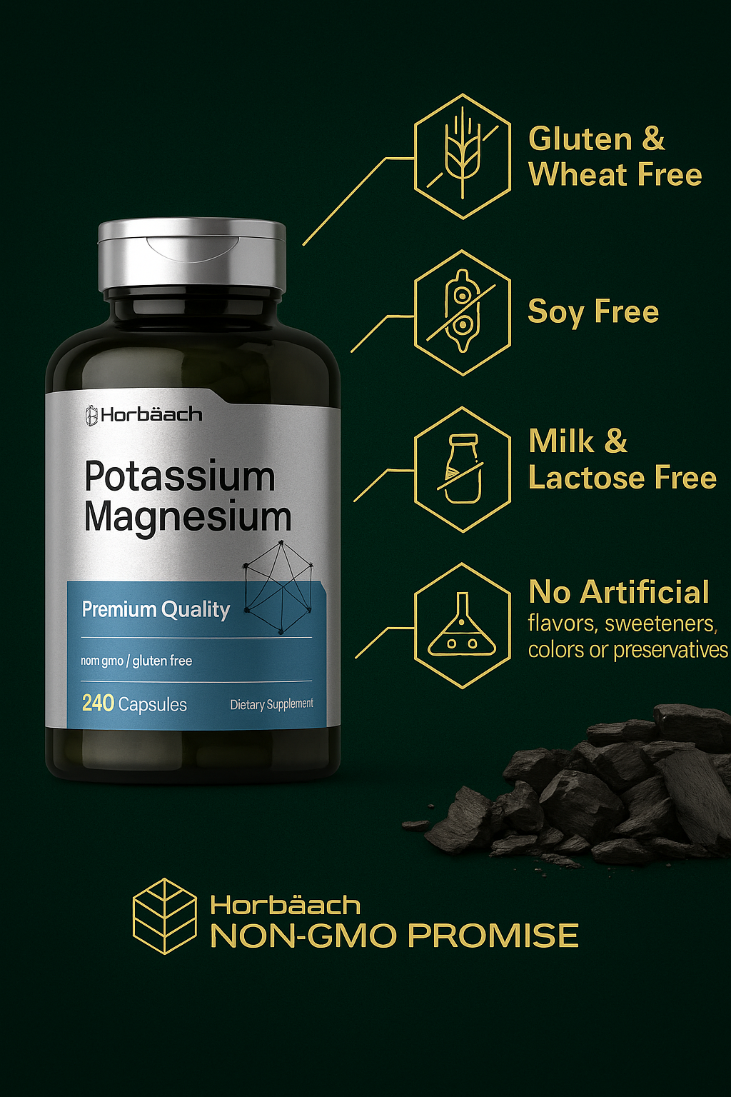 | Suplemento | Potasio (aspartato) 99 mg + Magnesio (óxido/quelado) 100 mg por porción |